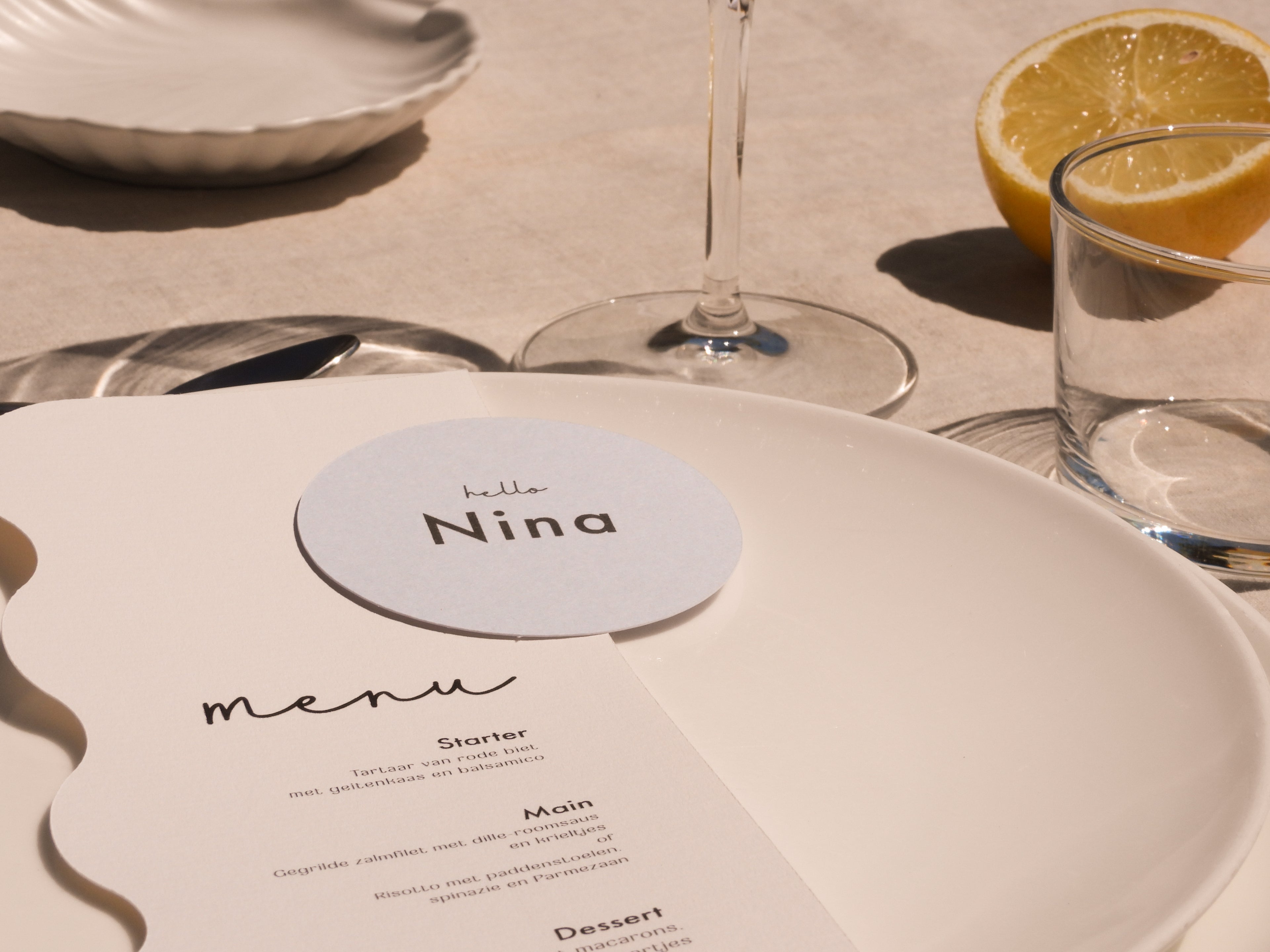 Omdat we trots zijn op wat we maken, kunnen foto’s van maatwerkdrukwerk worden gebruikt voor promotionele doeleinden, zoals op onze website of via social media (bijv. Instagram of Pinterest). Dit gebeurt altijd met zorg en nooit vóór het moment van het evenement (zoals een bruiloft of geboorte).